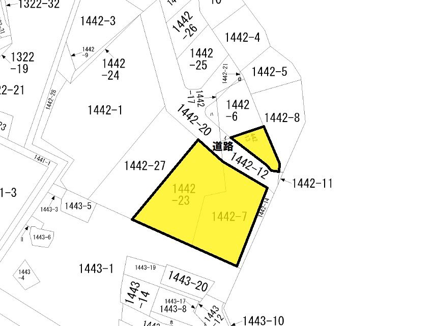 備考:道路向かいの土地(地番:1442-13 地目:山林 地積:190㎡)もセットでの販売となります。